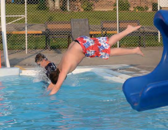 ABOVE LEFT: Riley Prebula, 10, of Polo competes in the kids’ division at the Rock River Riders Motorcycle Club’s Father Day Hillclimb on June 15. ABOVE: Two boys dive into the Polo Pool during the start of the evening swim June 10. The public pool opened for the 2025 season last week.