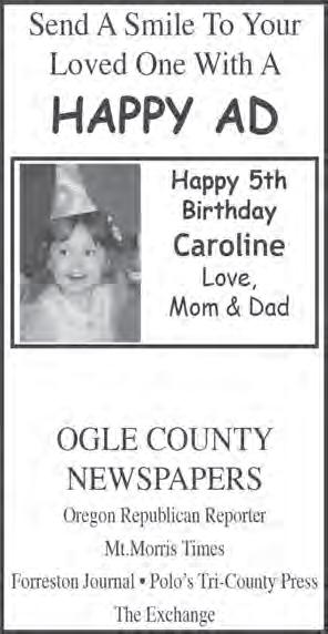 Deadline for obituaries is 2 p.m. Tuesday for Friday’s edition SEND NEWS news@oglecountynews.com