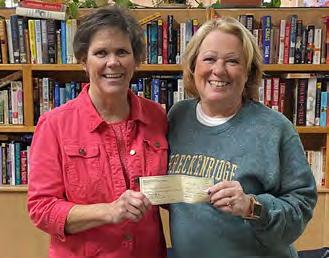 Paula Faivre (right) presents a check for $16,500 from the Blanche Jones Trust to Polo Library Director Marie Monaco.