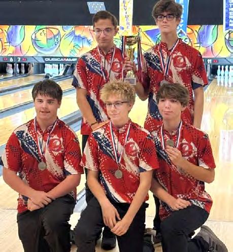 tournament at Don Carter Lanes. RJ Keene earned an individual medal for a high game of 274. Pictured in the back row are Caleb Ehrler and RJ Keene. In the front row are Rylann Delehanty, Andrew Stahl and Ethan Rowe.