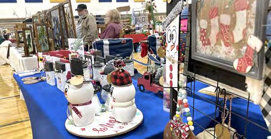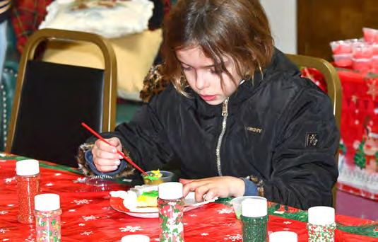 TOP LEFT: Tom, Kathleen, Blake and Rhett Wilkinson of Polo shop at the Doughmama booth Dec. 6 at the Polo Christmas Festival’s Craft and Vendor Show. The event was in the gymnasium of Centennial Grade School. TOP RIGHT: Baylee Dunseth, 9, of Davis, and Astrid Griggs, 7, of Polo, roast marshmallows to make smores at First State Bank during the festival. ABOVE: Bea Watt-May, 7, decorates a cookie at the Polo Senior Center. ABOVE LEFT: Polo’s Christmas Festival included Historical Tour trolley rides and Mane Street Horse and Wagon Rides. The two pass on Franklin Avenue by the Polo History Museum. LEFT: Visitors to the Craft and Vendor Show could choose from a wide variety of Christmas items.