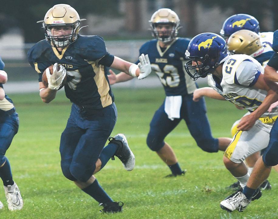 Afterstorybookendingstothe last twoplayof f runs,thisseason’sfin ale wasthestuffofnightmares.Aftertaking a 48-44with42secondstoplay in theI8FAsemifinals,theMarcos’ hopes for a thirdstraightstatetitle-gam e berthweredashedwhenWest Central seniorstarKaiden Drost e scored as timeexpired.