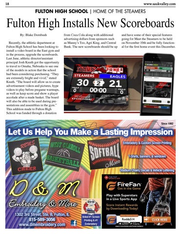 from Coca Cola along with additional advertising dollars from sponsors such as Manny’s Too, Agri King, and Central Bank. The new scoreboards should be up