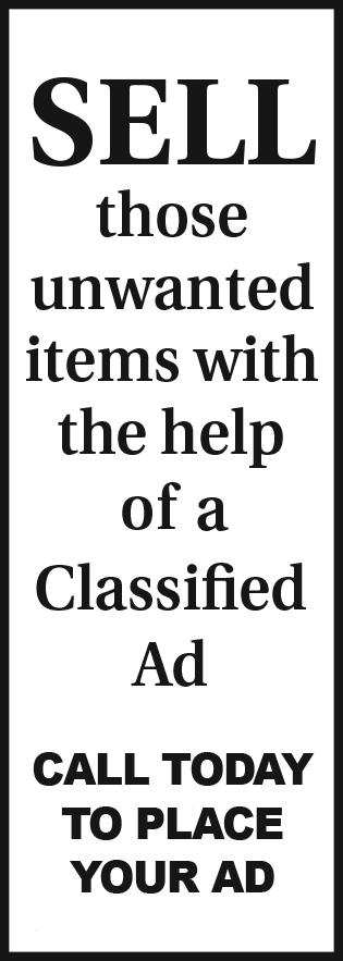 All real estate advertising in this newspaper is subjec t to the Fair Housing Act which makes it illegal to adver tise “any prefer ence, limitation or discrimination based on race, color, religion, sex, handicap, familial status or national origin, or an inte ntion, to make any such preference , limita tion or discrimination .” Familial status includes children under the age of 18 livin g with parents or le gal custodians, pregnant women and people securing custody of child ren under 18. This newspaper will not know in gly ac cept any advertising for real estat e which is in violation of the law. Our readers are hereby informed that all dwellings advertised in this newspaper are available on an equal opportunity basis. To complain of discrimination call, HUD toll-free at 800- 669-9777. The toll-free telephone numbe r for the he aring impaired is 800-927-9275