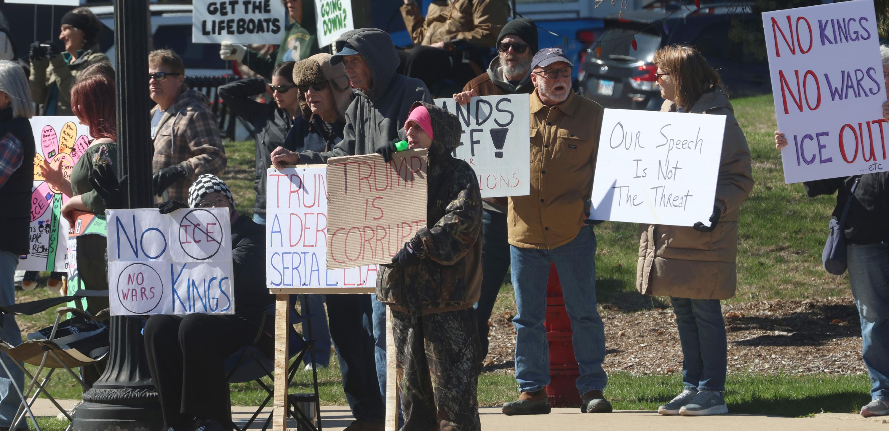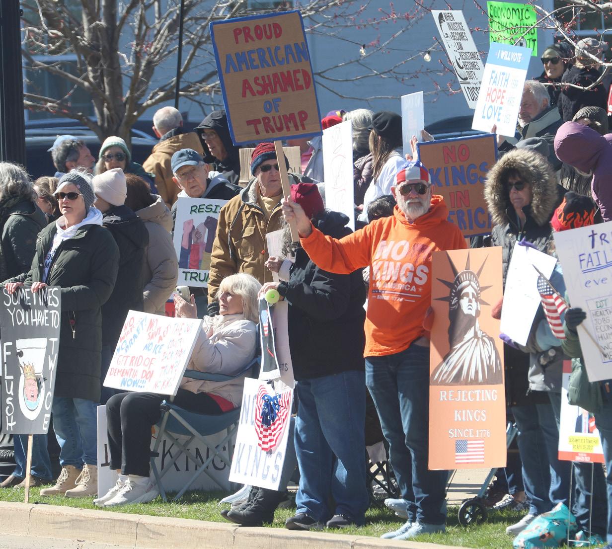 More than 100 people gathered for a “No Kings” rally on Saturday at Rotary Park in Princeton. – Scott Anderson