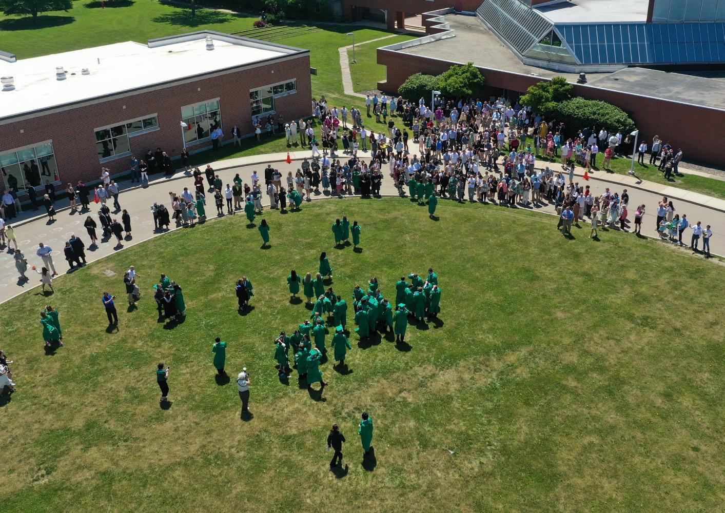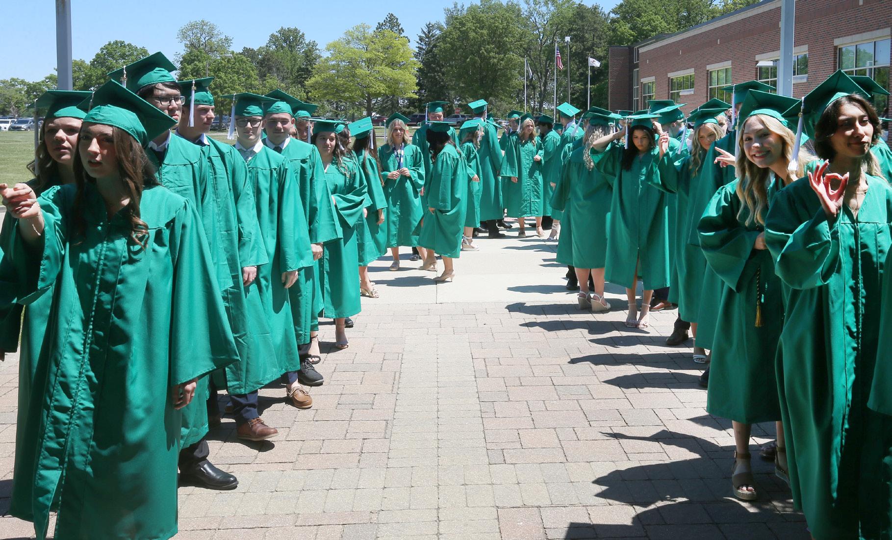 LEFT: St. Bede Class of 2025 graduates walk in procession May 18 during the 133rd annual commencement ceremony at St. Bede Academy. ABOVE RIGHT: St. Bede Class of 2025 graduates walk in procession May 18 during the 133rd annual commencement ceremony at St. Bede Academy. LEFT: An aerial view of St. Bede graduates, families and friends as they depart the Abbey Church on May 18 during the 133rd annual commencement ceremony at St. Bede Academy. BELOW LEFT: St. Bede Class of 2025 graduates walk in procession May 18 during the 133rd annual commencement ceremony at St. Bede Academy.
