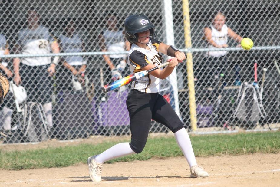 ABOVE: Putnam County’s Reece Lenkatis makes her pitch against Fieldcrest on Aug. 11 game in McNabb. The Pumas won 13-3. LEFT: Putnam County’s Anni Judd makes the catch against Fieldcrest on Aug. 11 game in McNabb. BELOW: Lillian Bouxsein takes her rips for Putnam County in the Aug. 11 game vs. Fieldcrest.