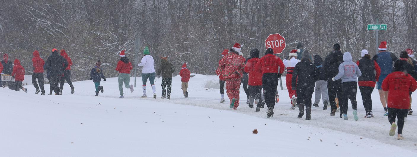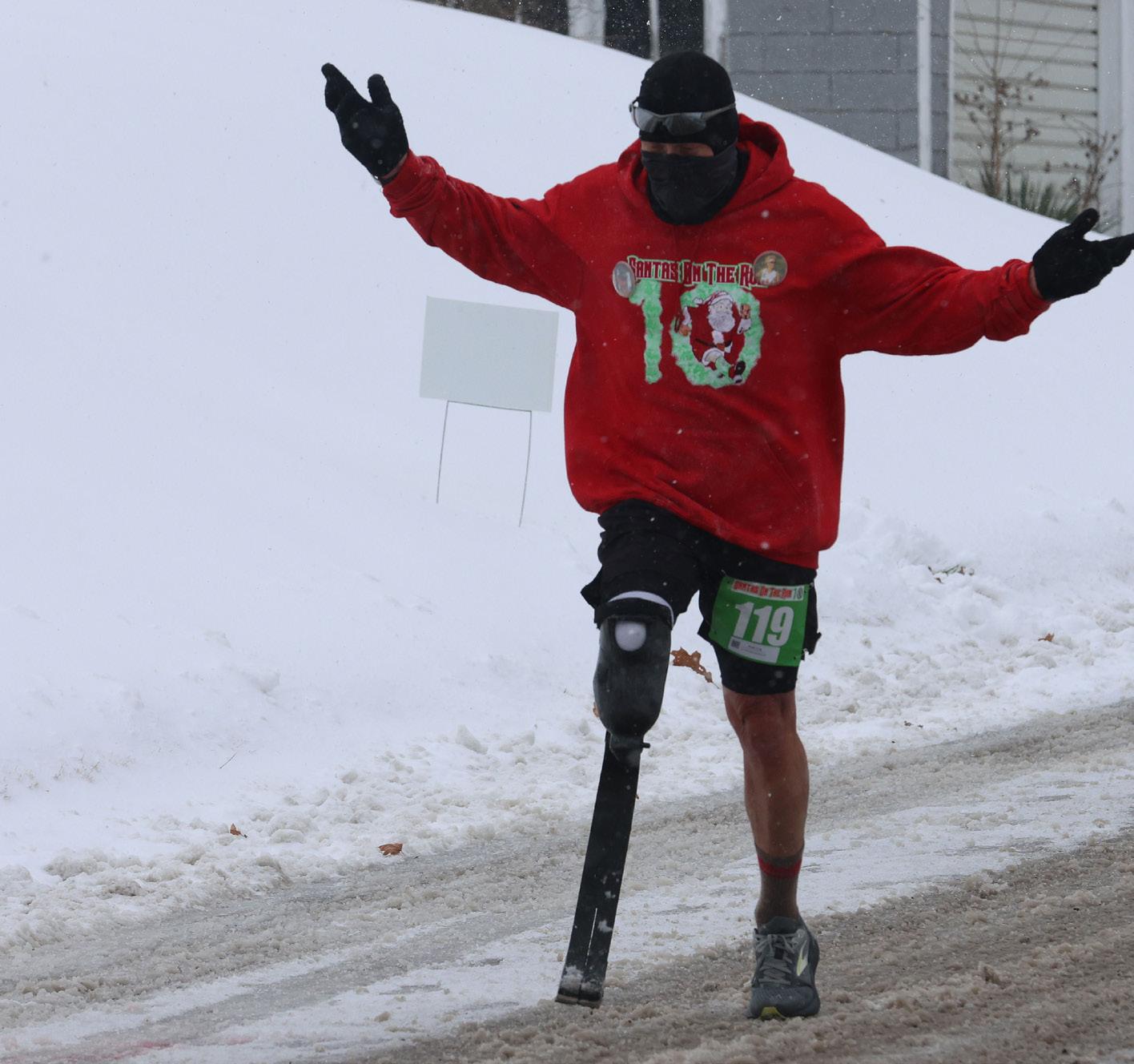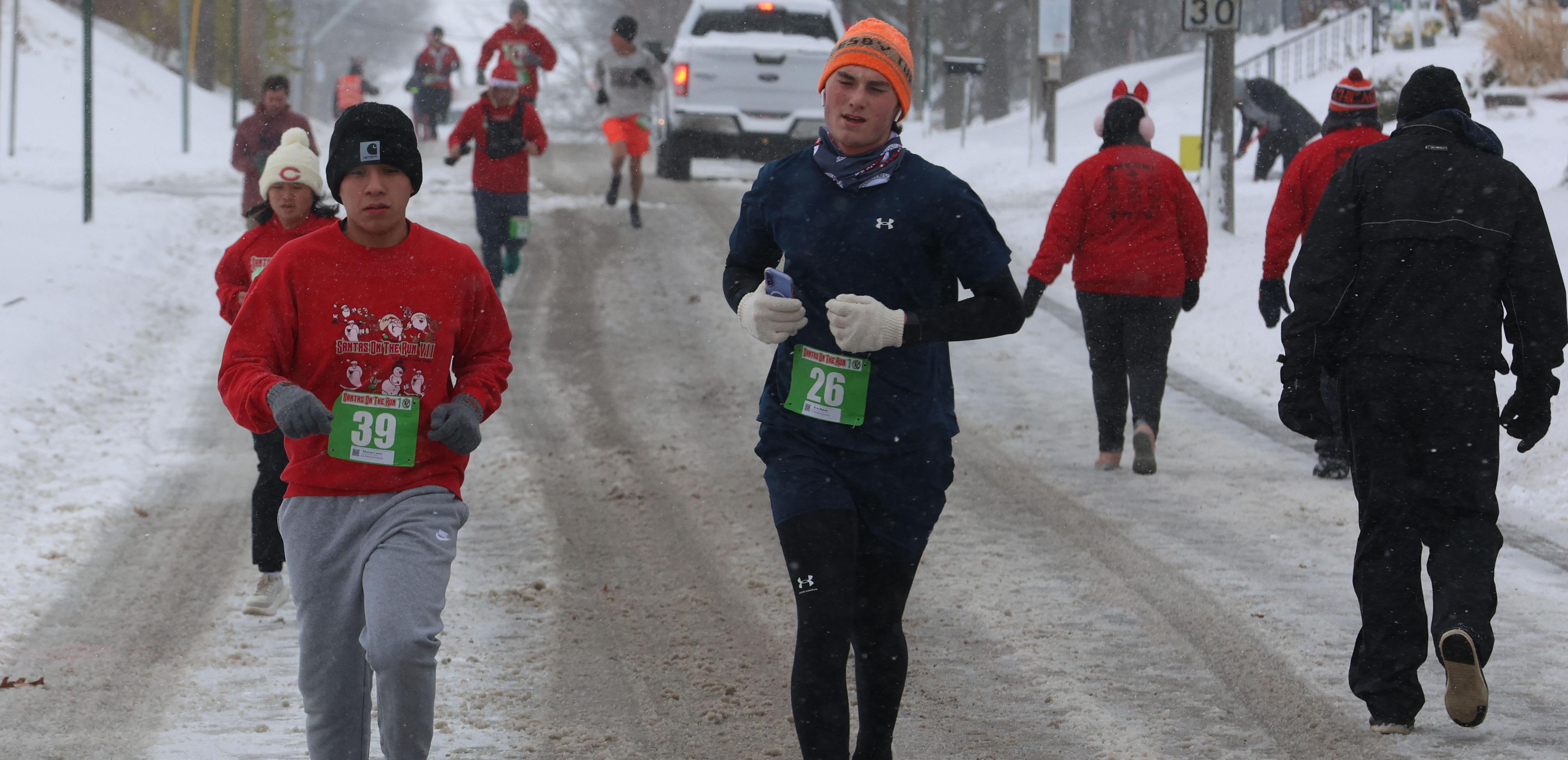 More than 100 participants braved the cold and snow during the Santas on the Run 5K and 1-mile walk Saturday in Spring Valley.