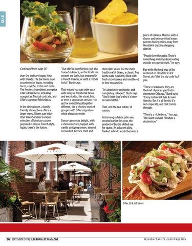 piece of Colonial Mexico, with a charm and intimacy that leaves patrons feeling miles away from Hinsdale’s bustling shopping district. "People love the patio. There's something amazing about eating outside on a great night," he says.