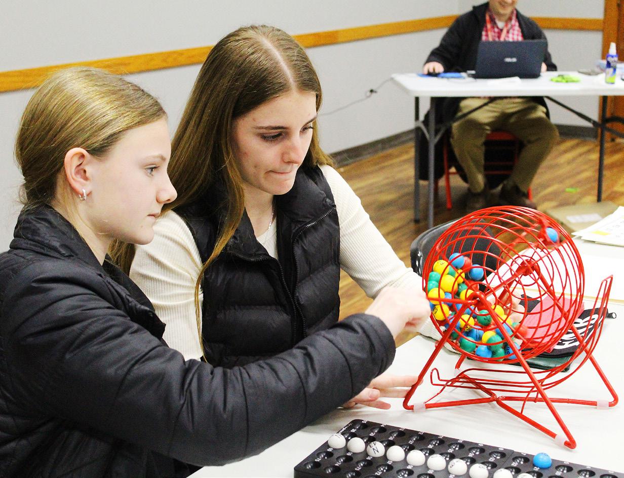Key Club members Faith and Leah Young called Bingo numbers Jan. 15, during the club’s monthly Golden Ages Bingo game at Odell Public Library. The free event for seniors 55 years or older offers gift bag prizes and treats to eat during play.