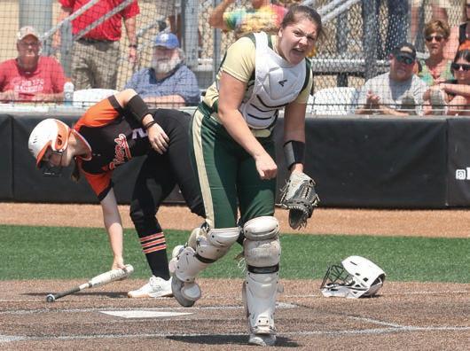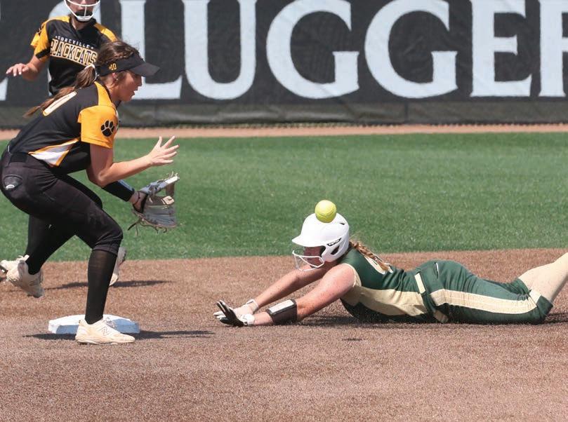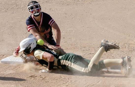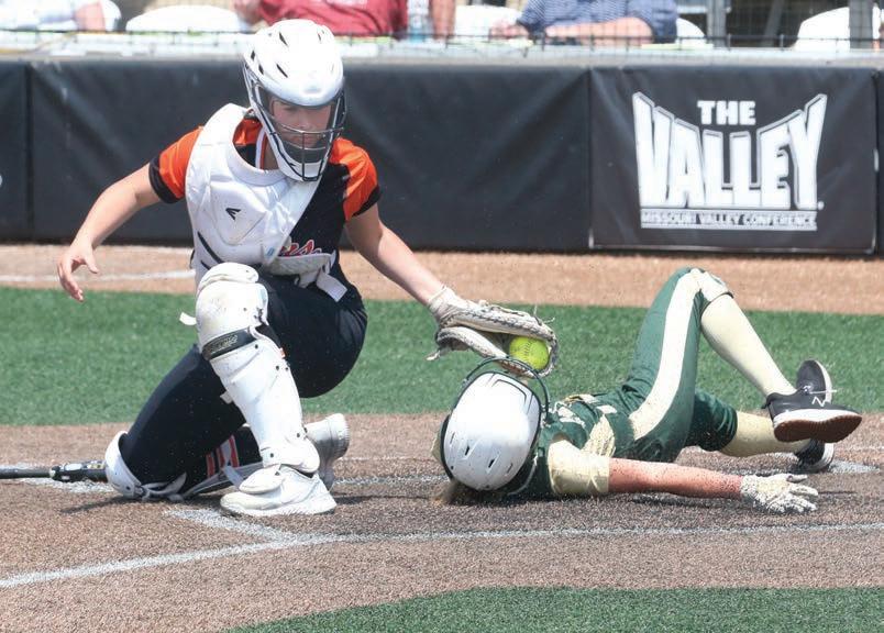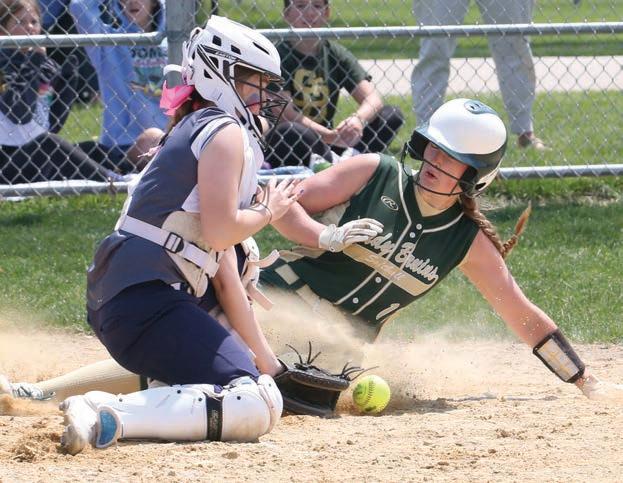 St. Bede’s Madelyn Torrence reaches home as Annawan/ Wethers eld’s Karsyn Rico misses the tag in the Class 1A Regional nal game on Saturday, May 20, 2023 in Annawan.