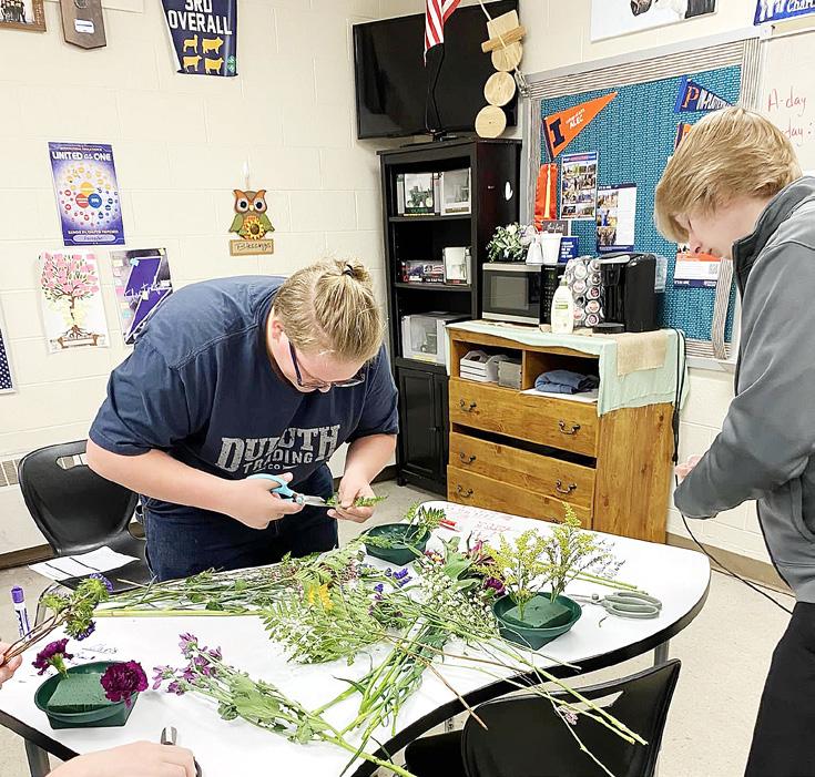 In addition to horticulture, Parks also teaches plant and animal science, ag business and a shop class at the school to around 120 students, about 50 of whom are FFA members. Horticulture students each make floral arrangements as a final class project in May. Among those students will be sophomore FFA officers Cylee Kirchner and Jenna Alexander. Cylee, whose favorite FFA activities involve livestock judging, and Jenna, who enjoys veterinary science, helped out with the previous two classes and look forward to seeing what they can do with the next class.