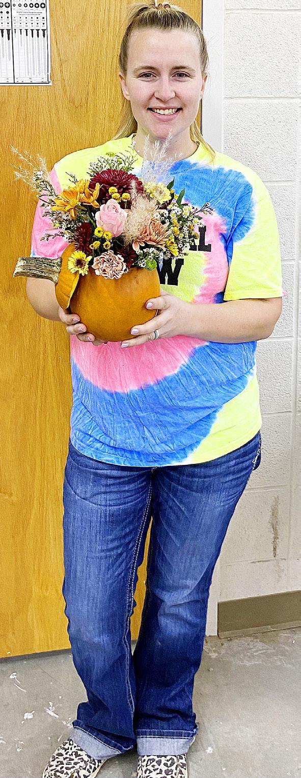 FFA adviser Kelley Parks shows a flower ar rangement she made to promote the chap ter’s first floral ar rangement workshop in November.