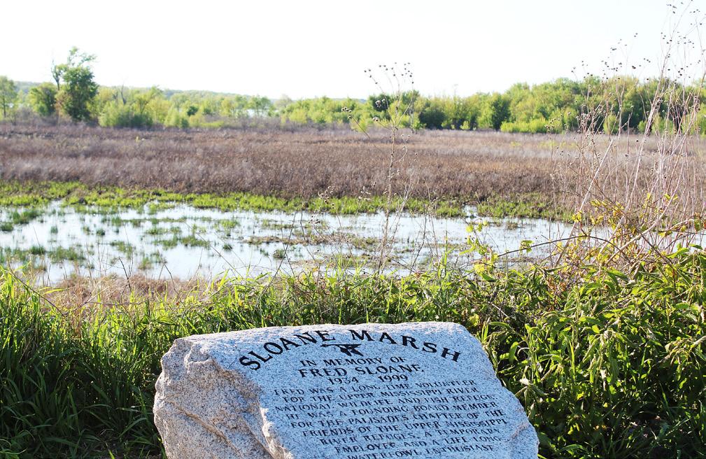 closer look at nature. The marsh is named for the late Fred Sloane, who was a longtime volunteer with the Upper Mississippi River National Wildlife and Fish Refuge. Across the road from Sloane Marsh is the Ingersoll Wetlands Learning Center. The facility not only celebrates one of the world’s most famous rivers and its tributaries, it’s the learning center and office for the Upper Mississippi River National Wildlife and Fish Refuge, featuring hands-on exhibits and educational materials. The learning center is operated by the Upper Mississippi River National Wildlife and Fish Refuge and the Stewards of the Upper Mississippi River Refuge. The facility features a central exhibit area with interactive displays, preserved animals, pamphlets, a bookstore and gift shop. Outside, the surrounding area features opportunities for visitors to experience nature firsthand among 35 acres of native and sand prairie. Hikers and bikers are also welcome to traverse the Grand Illinois Trail.