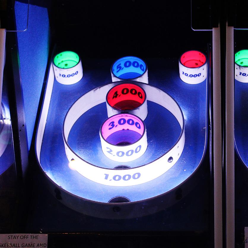 A few arcade games are scattered throughout the complex. A couple of crane games are at the bowling alley, Jumpin’ Joes has Golden Tee Golf and a pinball machine, and Eilert’s has tabletop shuffleboard and a console with multiple old-style arcade games.
