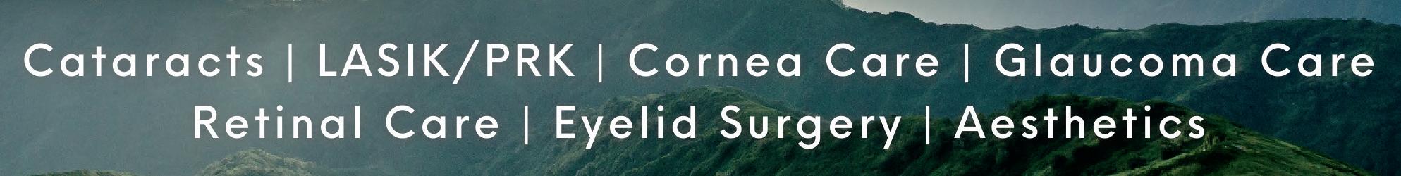 PRK, corneal diseases, glaucoma, and eyelid problems.