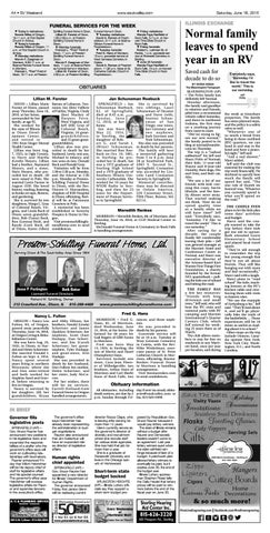 Schilling Funeral Home in Dixon. Lillian M. Farster of Dixon, 1:30-2:30 p.m. at PrestonSchilling Funeral Home in Dixon. ▼ Monday funerals: Frances L. “Fran” Ford of Dixon, 11 a.m. at PrestonSchilling Funeral Home in Dixon. Marvin F. Zaagman of Morrison, 11 a.m. at Bosma-Renkes Funeral Home in Morrison. Lillian M. Farster of Dixon, 2:30 p.m. at Preston-Schilling