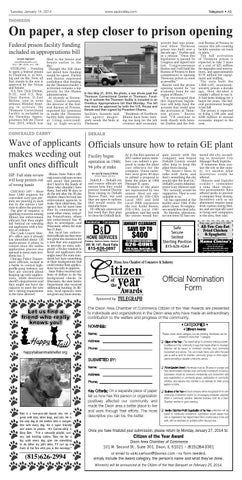 Wave of applicants Officials unsure how to retain GE plant makes weeding out Facility began operation in 1946; unfit ones difficult 94 jobs at stake ISP: Full state review will keep permits out of wrong hands CHICAGO (AP) – More than 1,000 requests for concealed carry gun permits are pouring in each day in the nation’s last state to allow the practice. The glut of requests is sparking concerns among Illinois law enforcement officials that they might fall behind on weeding out applicants with a history of violence. The Cook County Sheriff’s office says it already has identified about 120 applications it plans to contest since the online application process was opened to most state residents Jan. 5. Chicago Police Department officials, locked in a battle to control highprofile gang violence, say they are worried about keeping up with applications, while downstate sheriff’s departments said they might not have the capacity to meet the new law’s vetting requirement in the time allowed.