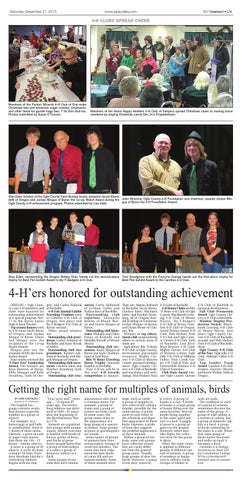 4-H’ers honored for outstanding achievement OREGON – Ogle County’s top 4-H members and clubs were honored for outstanding achievement at a special program Nov. 17 in the Byron Junior High School Theatre. Top county honors went to 4-H teens Jacob Ebens of Oregon and Jordan Mingus of Byron. Ebens and Mingus were the recipients of the Co-op Watch Awards. Mingus also was the recipient of $50, the Foundation Award. Four youths received the “I Dare You” Leadership Award. The winners are Ryan Reeverts of Byron; Abby Mongan and Kelly Stranberg, both of Ore-