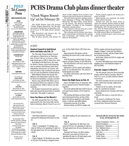 Tri-County Press oglecountynews.com OFFICE 113-115 Peoria Ave. Dixon, IL 61021 (815) 732-6166 ext. 5901 Fax: (815) 732-4238 8 a.m. to 5 p.m. Monday-Friday SUBSCRIPTIONS $39 in Ogle County, and $52 outside Ogle County. Single-copy price is $1 To subscribe, make a payment or discuss your delivery, call 815-732-6166, ext. 5320, from 7:30 a.m. to 6:30 p.m. Monday-Friday or send an e-mail to subscriptions@ oglecountynews.com. You also can subscribe online by going to oglecountynews.com and clicking on Subscribe. CLASSIFIED SALES 815-625-7653 OBITUARIES 815-732-6166, ext. 5903 vwells@oglecountynews.com Deadline for obituaries is 2 p.m. Tuesday for Friday’s edition SEND NEWS news@oglecountynews.com General Manager Earleen Hinton 815-732-6166, ext. 5902 ehinton@oglecountynews.com Editor Vinde Wells 815-732-6166, ext. 5903 vwells@oglecountynews.com Advertising Sales Lori Walker 815-625-3600, Ext. 5623 lwalker@oglecountynews.com The Tri-County Press, Ogle County News and oglecountynews.com are a division of Shaw Media. Ogle County Newspapers also prints the Mt. Morris Times, Forreston Journal, and
