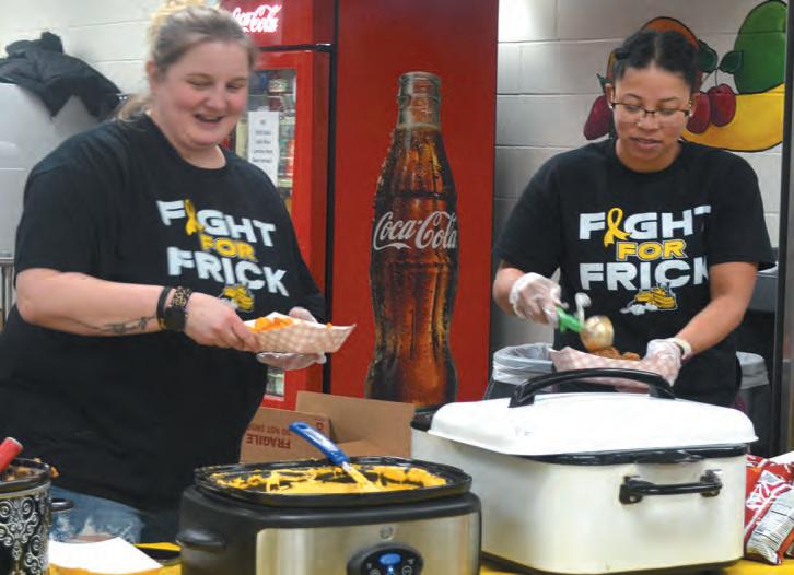 The“FightforFrick”fundraiserdrewhundredstothe schoolduringbasketballgamesand SeniorNightatthe schoollastweek.Thefundraiserfeatured56rafflebaskets, 12silentauctionitemsand26giftcardsintheBlindDraw, withthoseticketssellingoutminutesaftertheevent started.