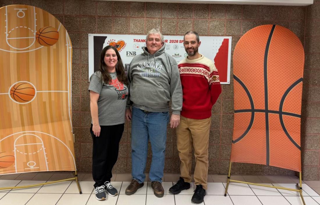 erie-Prophetstown’s team mom Jennifer Malone (left) came up with hoops for heart on behalf of her dad, alan ringenberg (center), and her late mom, Jill, who both experienced cardiac issues.