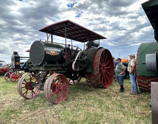 • The Bos’ behemoth Aultman and Taylor kerosene powered tractor owned by Chuck and Diane Bos. The popular 30-60, complete with 90-inch drive wheels and standing 11.5 feet tall and more than 18 feet long, was produced from 1910 until the company was sold in 1924.