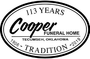 natalie@nataliearnett.com 210 WEST WALNUT • TECUMSEH, OK 74873 “Serving Families Since 1906” 405-598-2124 www.cooperfuneral.com 116 2022