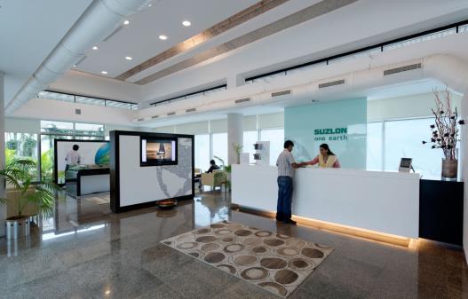 Suzlon believes in creating and maintaining a positive environment, both outside its office walls as well as on the inside. Suzlon One Earth is the embodiment of this belief. Situated in Pune, India, it is the eco-friendly, self-sufficient headquarters of the company. The campus is spread across 10 acres and is completely powered by renewable energy, including hybrid wind turbines, solar panels and photovoltaic cells.