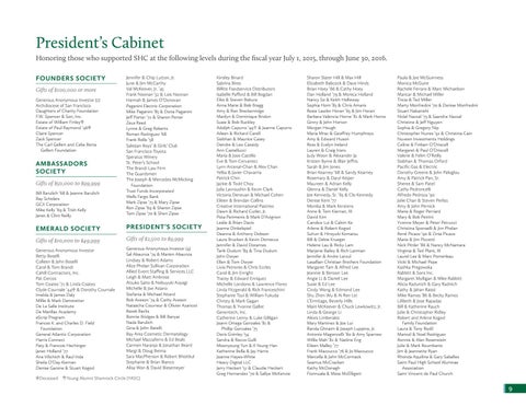 President’s Cabinet Honoring those who supported SHC at the following levels during the fiscal year July 1, 2015, through June 30, 2016. FOUNDERS SOCIETY