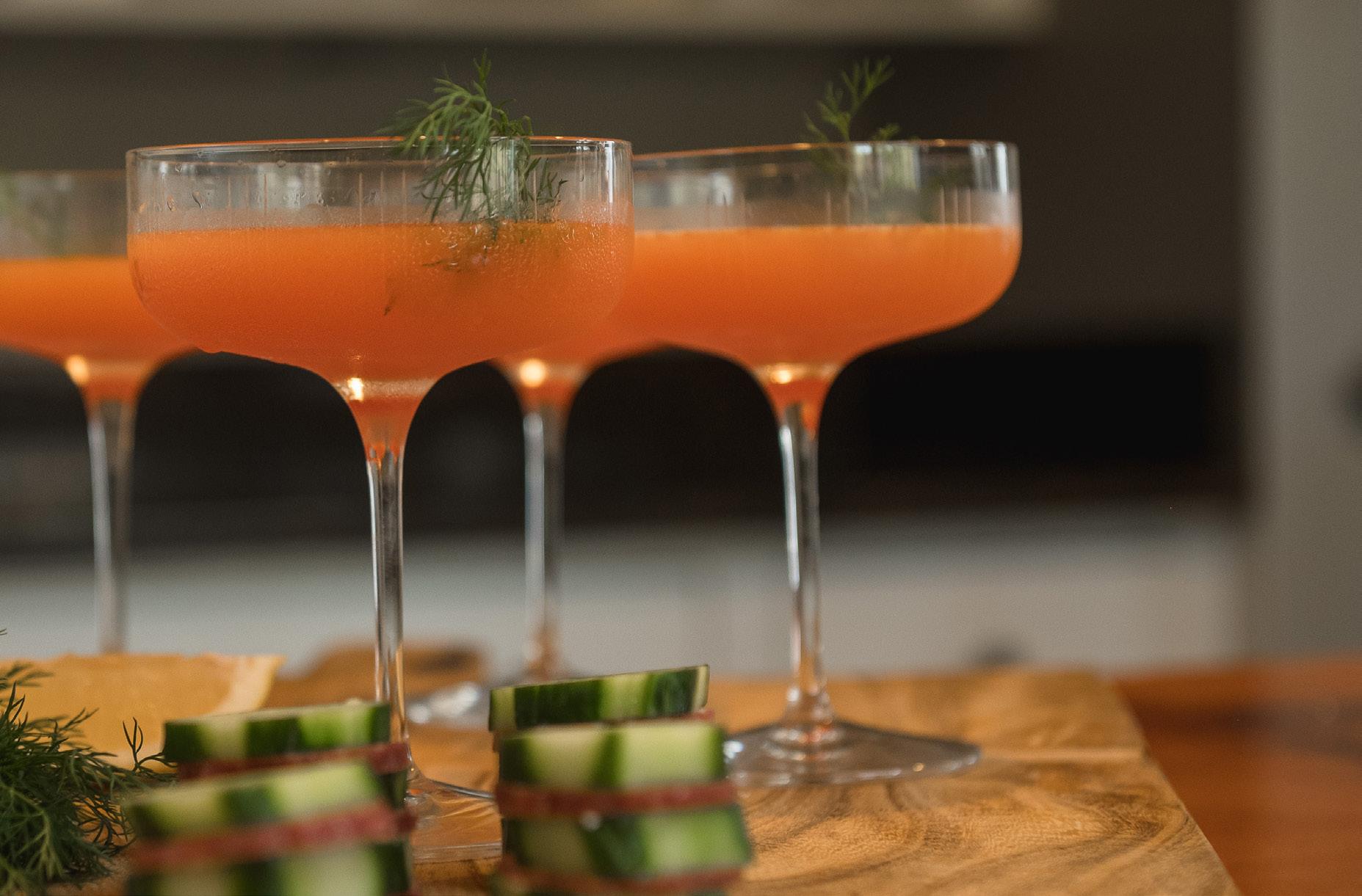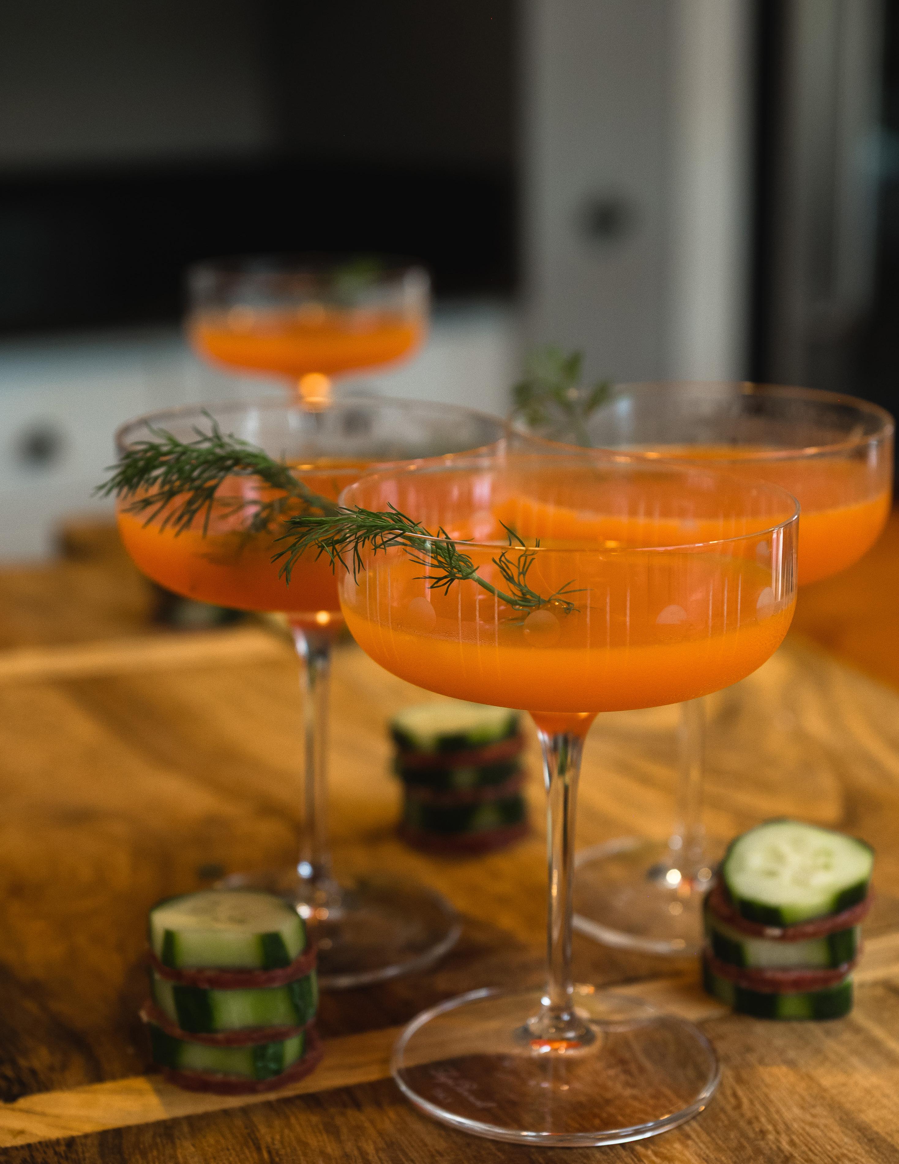 We can enjoy this healthier spin on our weekend cocktail with the decadence of the holidays behind us. I like to serve this with a simple appetizer of cucumber and cured salami slices.