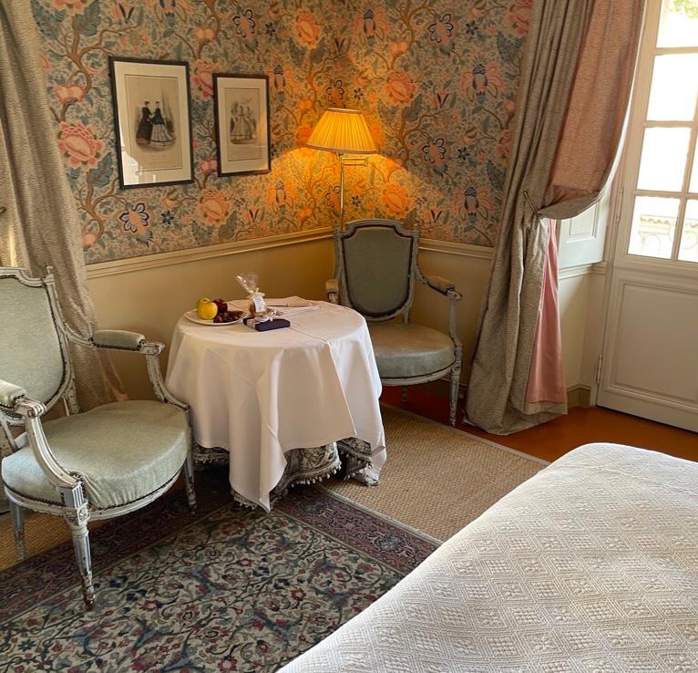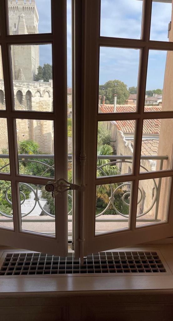 meeting the expectations of discerning hotel guests. La Mirande honestly does give the impression of being a private home where you live with centuries of decoration and décor. I enjoyed a gorgeous view of the Pope's Palace in my room, shrouded in a fog each morning. Everything about the room, like the hotel, was comfortable yet elegant.