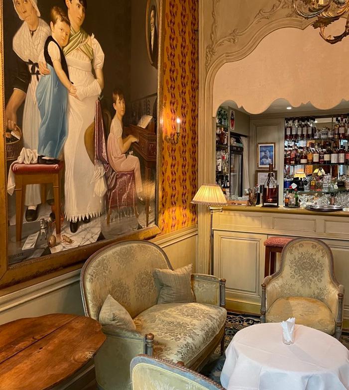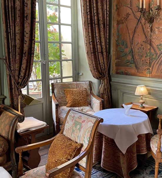 Evening gatherings can be held anywhere in the hotel, but I liked the room next to the quaint bar tucked into a small space. Settle into a comfy chair or sofa and order a beforedinner apero or choose appetizers and make it your dinâtoire.