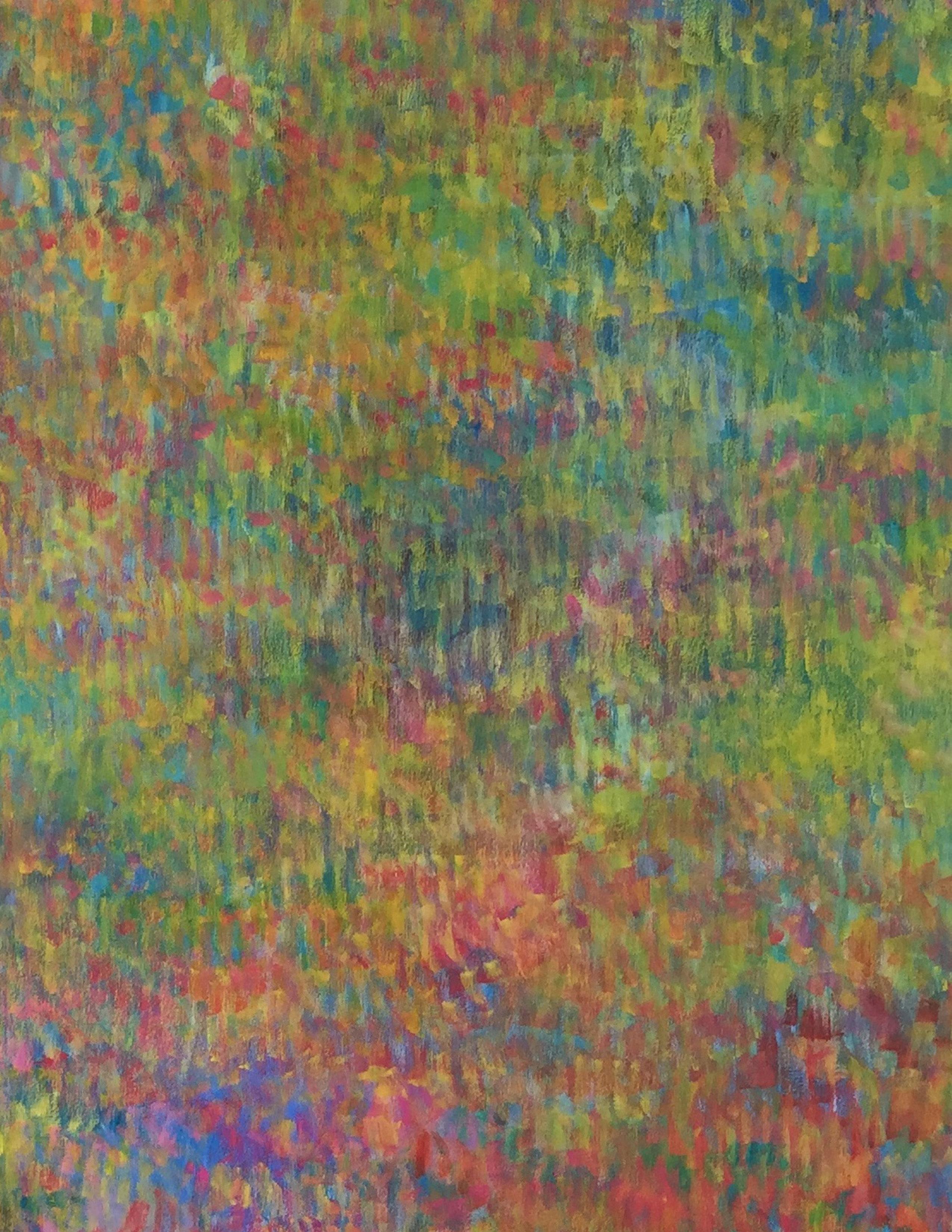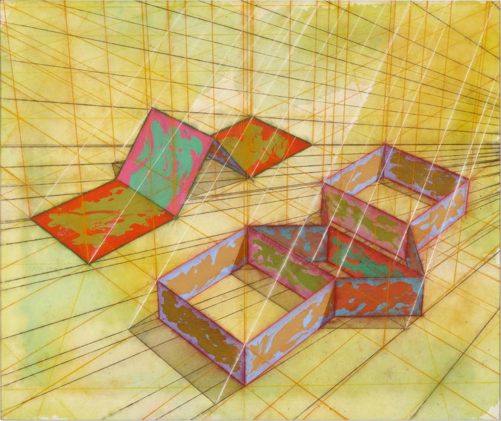Oil, glitter and lacquer on graph paper mounted on tycore 18 x 23 x 4 1/8 in.