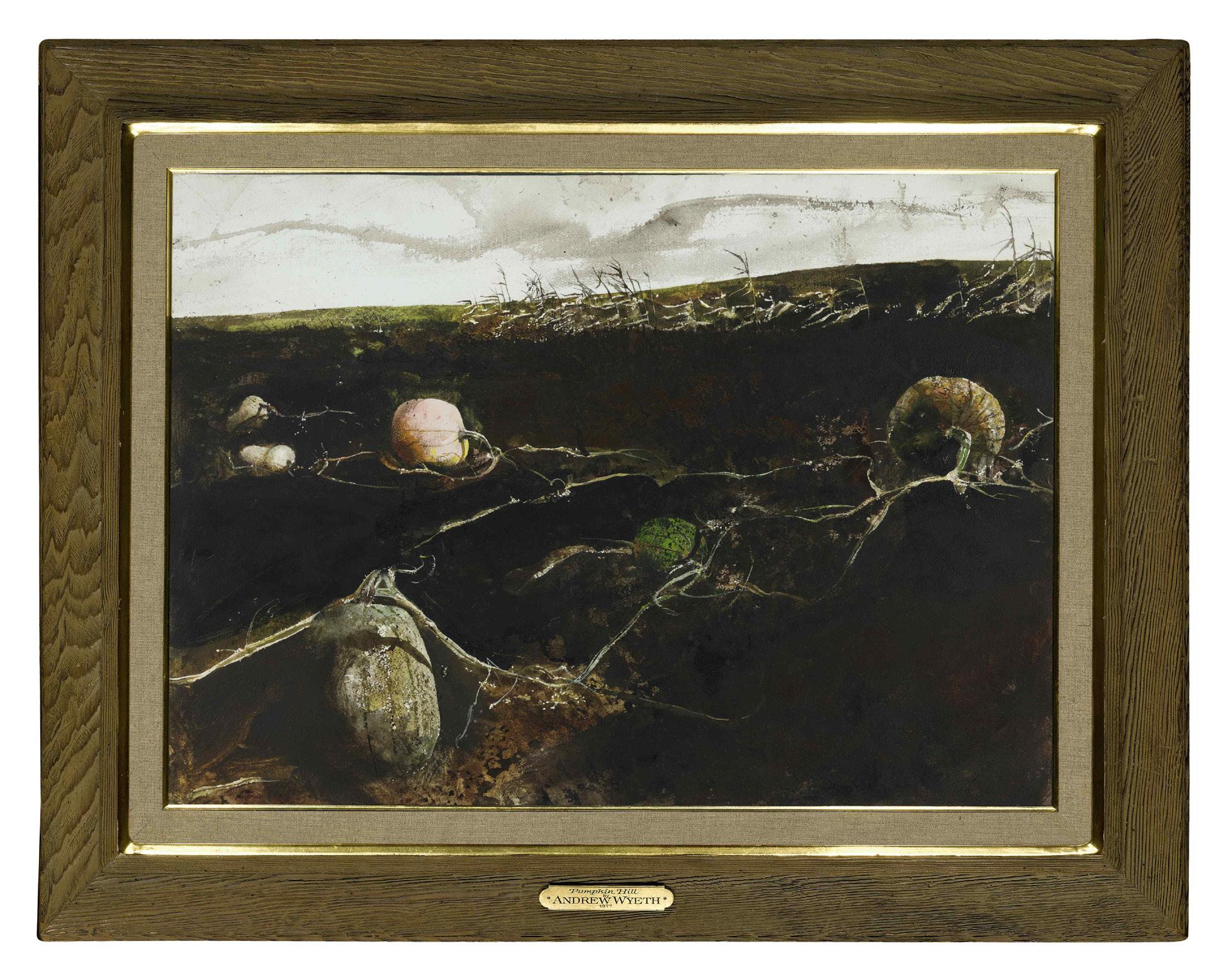 Watercolor and drybrush on paper laid down on board 21 1/2 x 30 in.