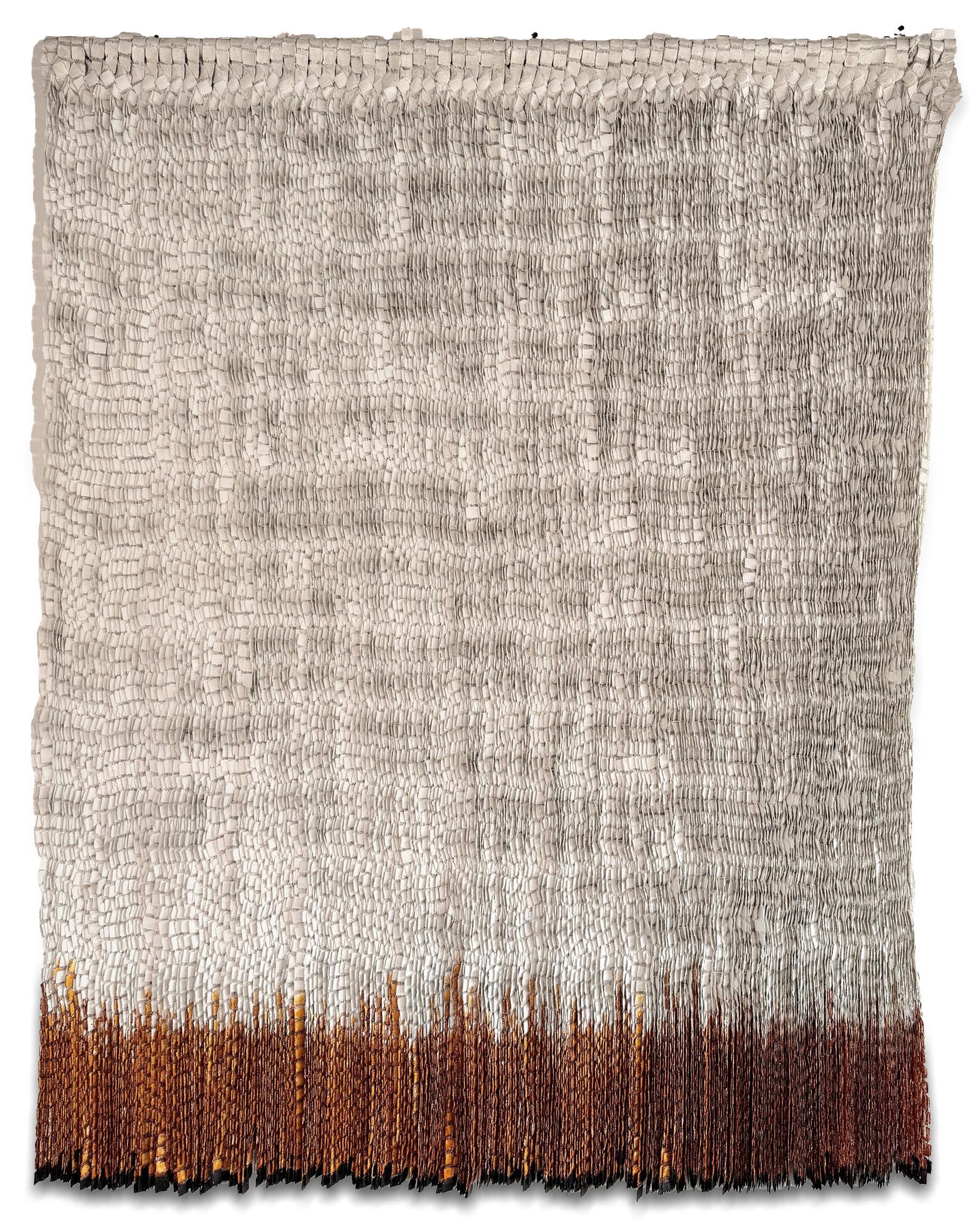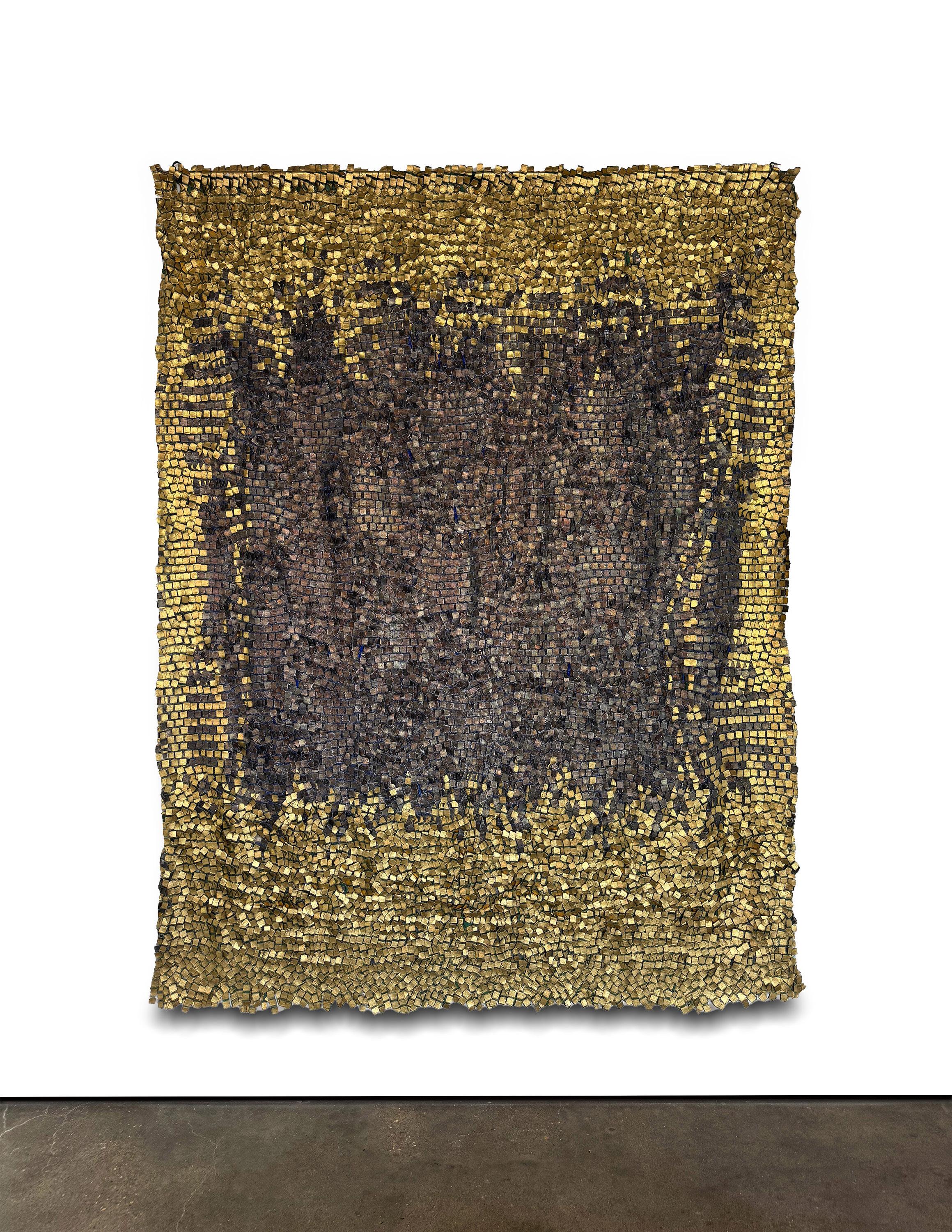 Linen, gesso, acrylic, Japanese paper and gold and silver leaf