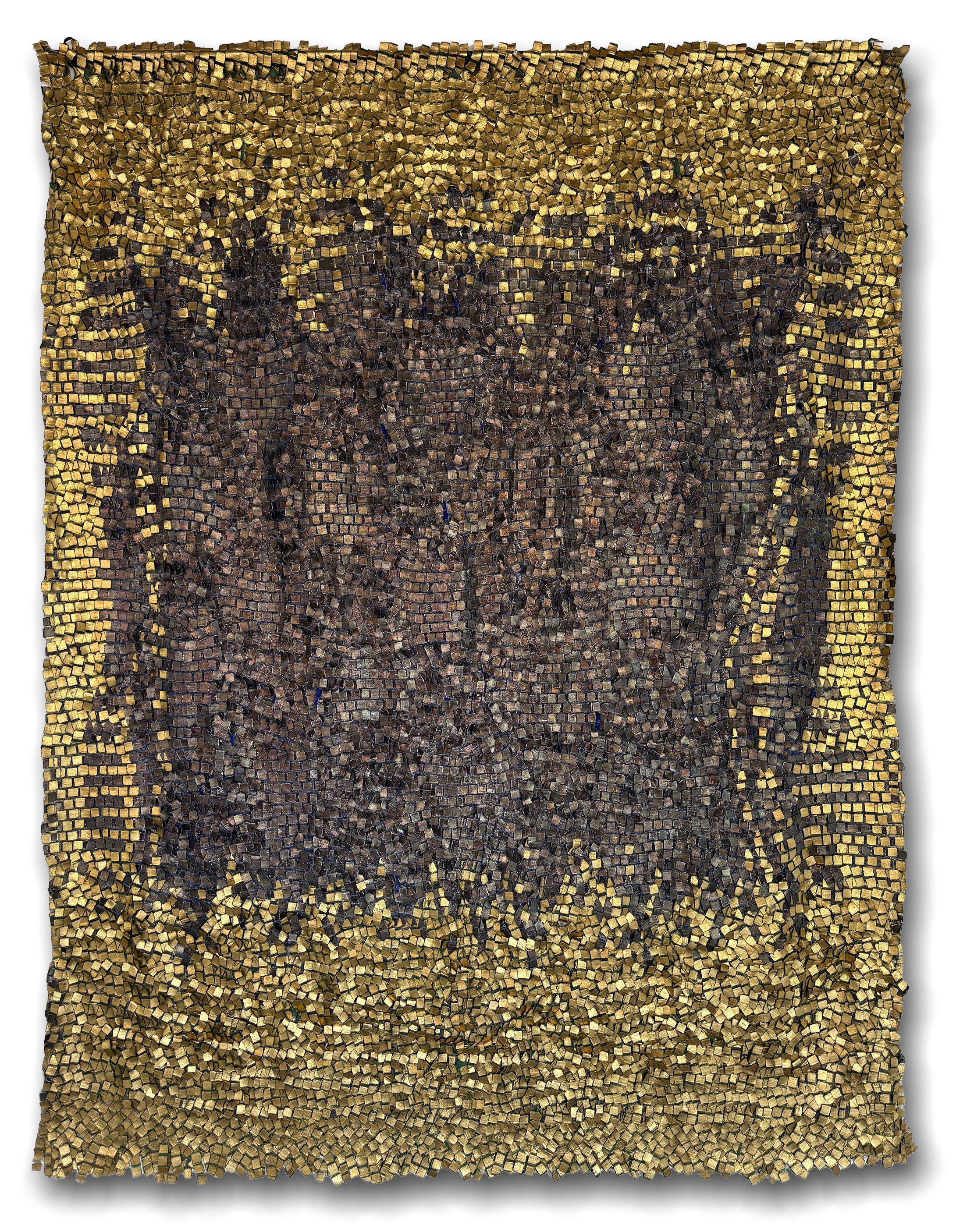 Linen, gesso, acrylic, Japanese paper and gold and silver leaf 85 x 69 in.