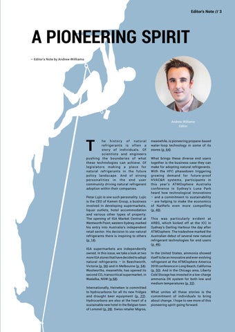 Petar Lujic is one such personality. Lujic is the CEO of Kamen Group, a business involved in developing supermarkets, liquor outlets, hotel accommodation and various other types of property. The opening of IGA Market Central at Wentworth Point, western Sydney, marked his entry into Australia’s independent retail sector. His decision to use natural refrigerants there is inspiring to others ( p. 14).