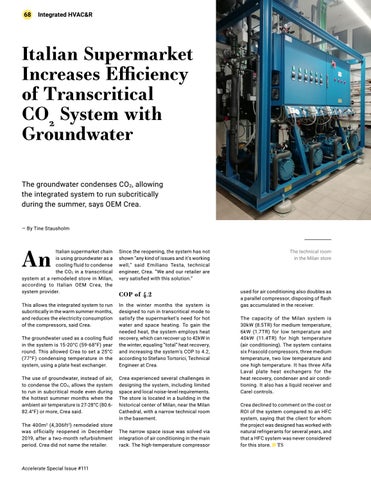 Italian Supermarket Increases Efficiency of Transcritical CO2 System with Groundwater The groundwater condenses CO 2 , allowing the integrated system to run subcritically during the summer, says OEM Crea. ― By Tine Stausholm