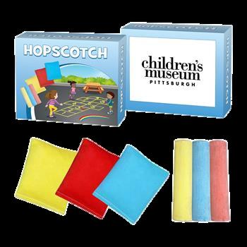 Comes with 3 pieces of chalk and 3 bean bags. One location imprint only.