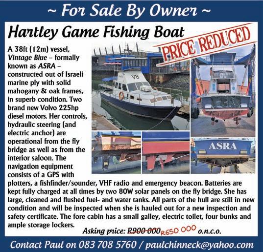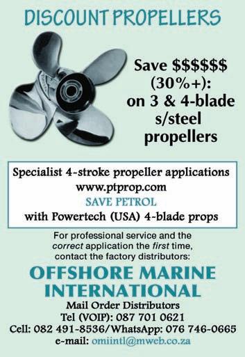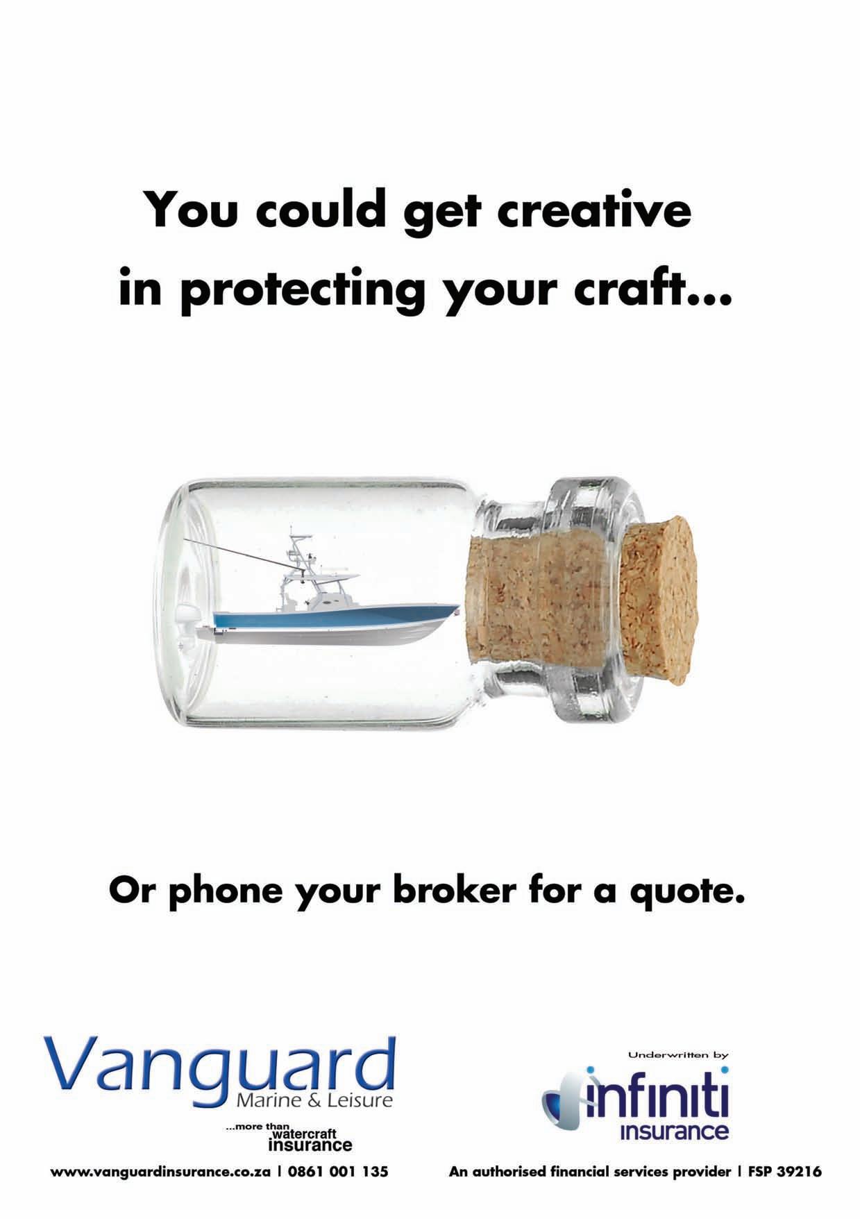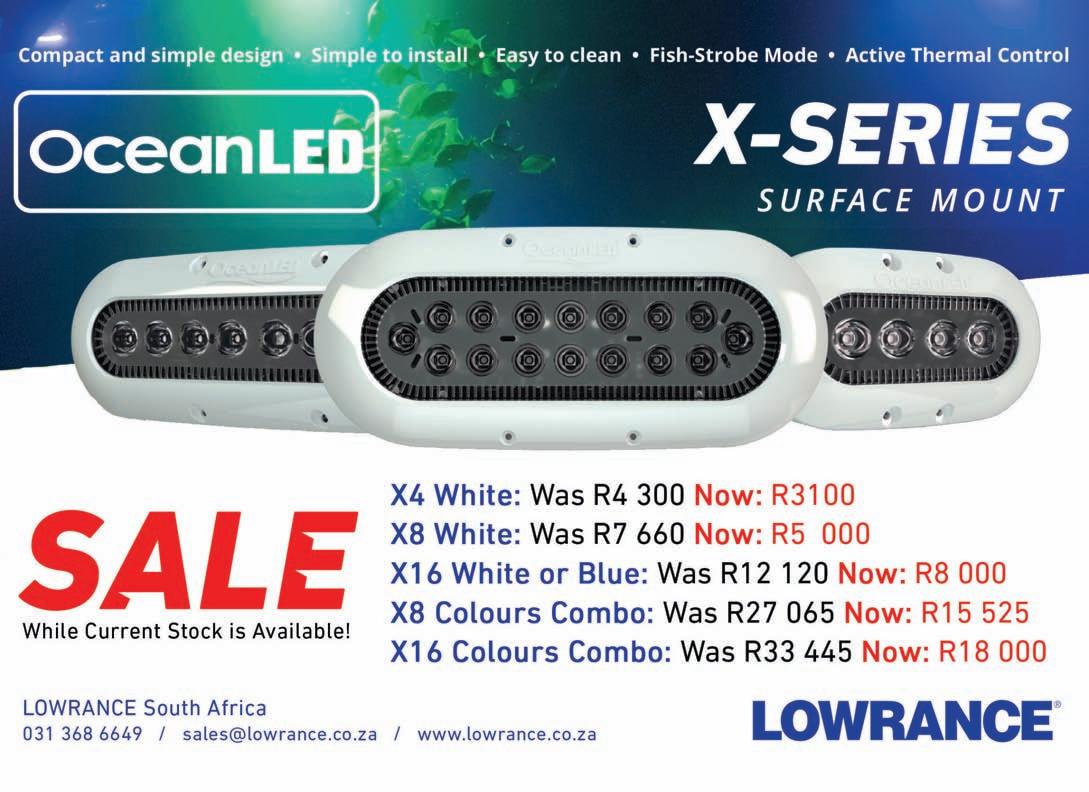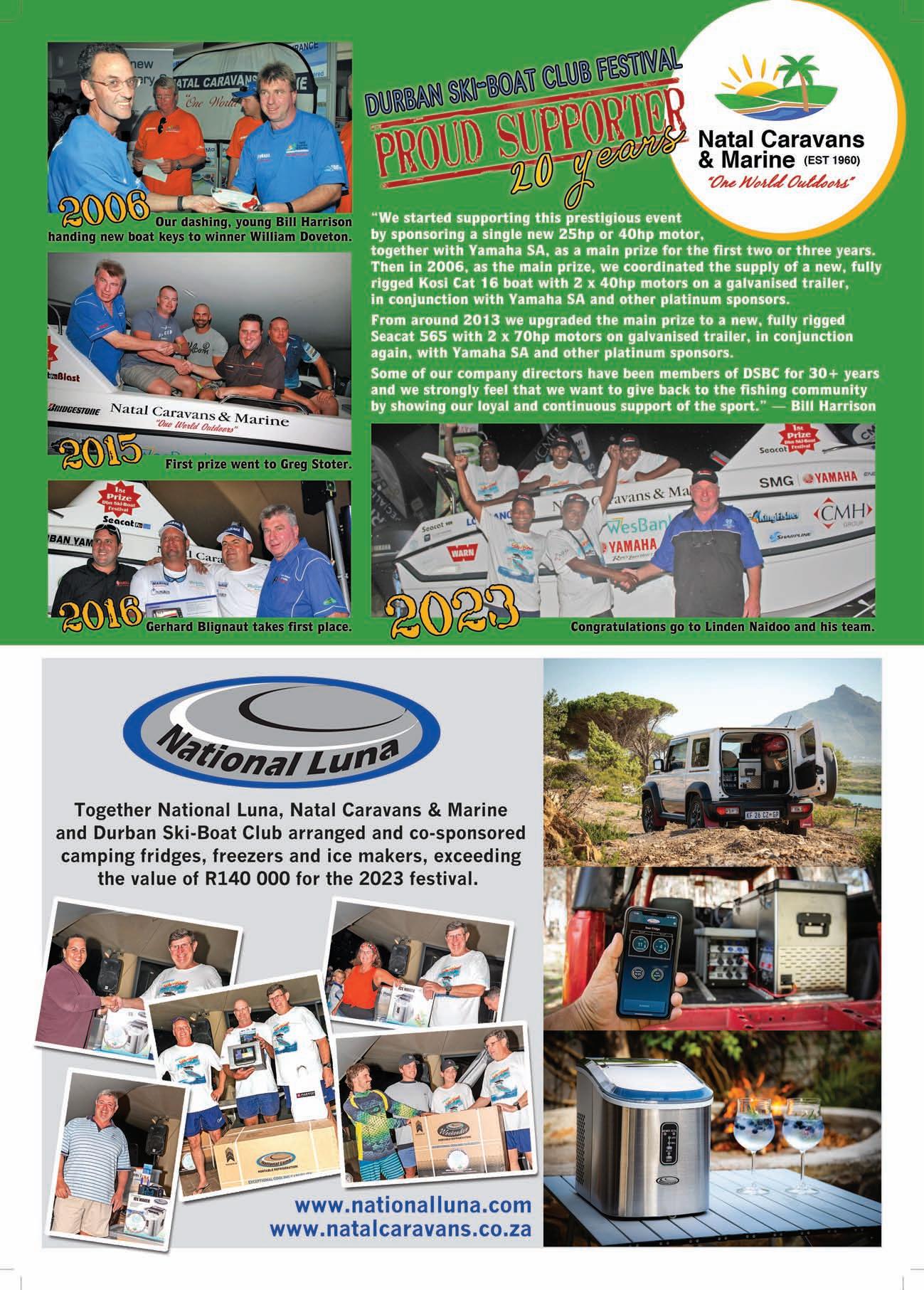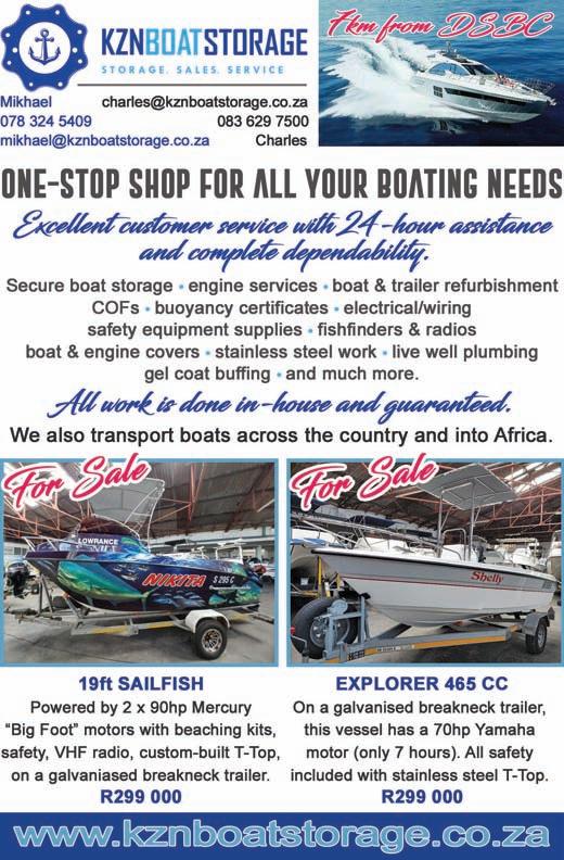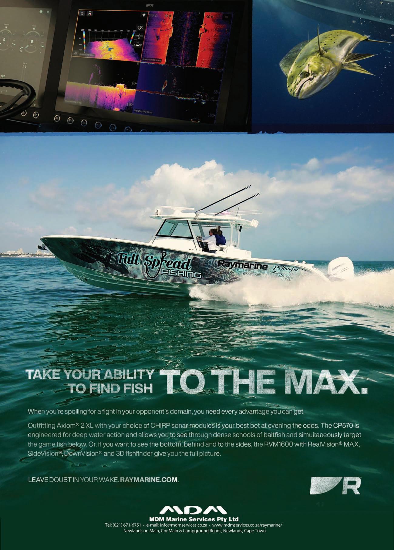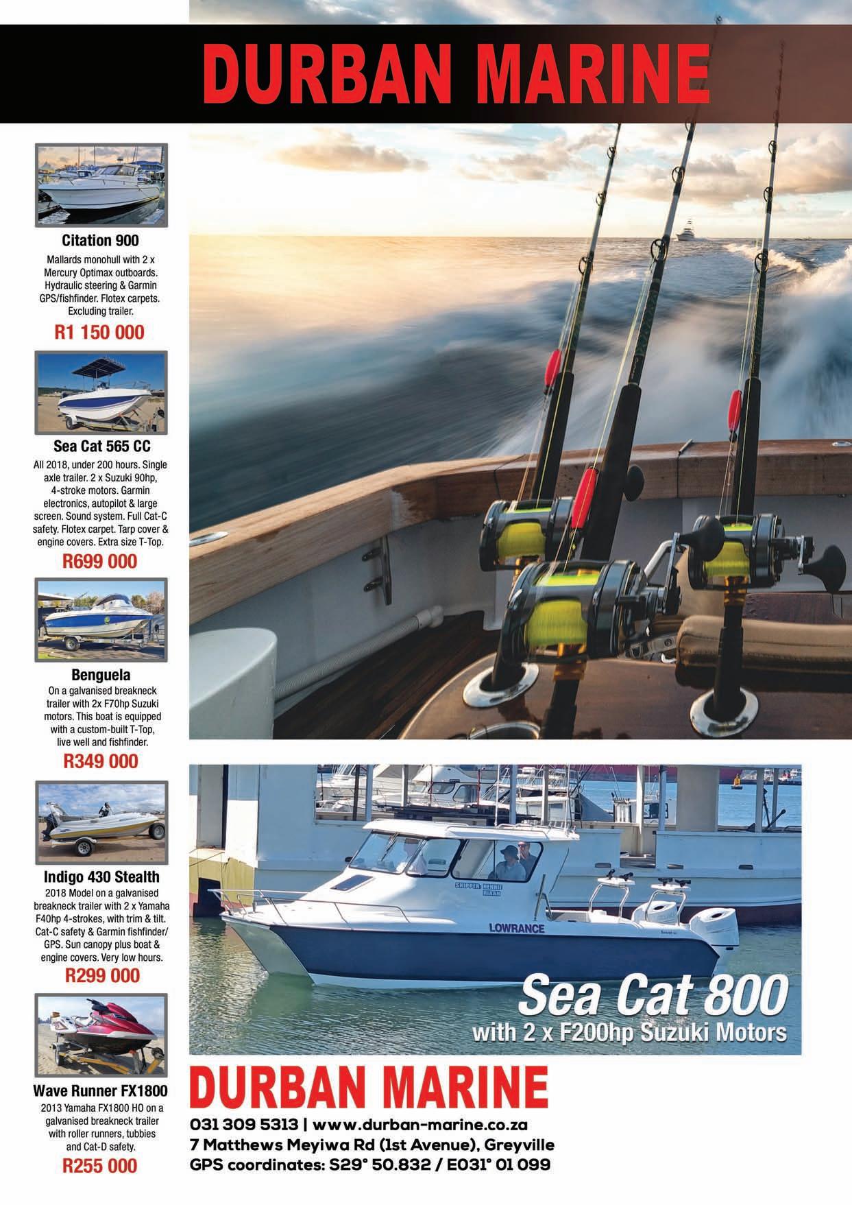 Adventure Tropicale . . . . . . . . . . . . .25 Ballistic Sunglasses . . . . . . . . . . . . . .39 Club Marine Insurance Comp . . . . . . .5 DSBC Festival Sponsors Thanks . . . .33 Durban Marine . . . . . . . . . . . . . . . . . .18 Fish & Go Boat Storage . . . . . . . . . . .44 Garmin . . . . . . . . . . . . . . . . . . . . . . . .20 Greenfish . . . . . . . . . . . . . . . . . . . . . .39 KZN Boat Storage . . . . . . . . . . . . . . . .39 Lands Edge . . . . . . . . . . . . . . . . . . . . .16 Lowrance . . . . . . . . . . . . . . . . . . . . . . .1 Lowrance . . . . . . . . . . . . . . . . . . . . . . .6 Maiden Voyage Industries . . . . . . . . .39 MDM — Raymarine . . . . . . . . . . . . . . .2 Mercury — Rutherford Marine . . . . .34 Mercury — Rutherford Marine . . . . .60 Mr Winch . . . . . . . . . . . . . . . . . . . . . .39 Natal Caravans & Marine . . . . . . . . . .28 Natal Caravans & Marine . . . . . . . . .IBC Natal Caravans & Marine . . . . . . . . .IFC OET . . . . . . . . . . . . . . . . . . . . . . . . . . .17 Queens of the Ocean . . . . . . . . . . . . .53 Riverside Cottages . . . . . . . . . . . . . . .44 Seaport Supply . . . . . . . . . . . . . . . . . . .8 Sodwana Tigerfish Bonanza . . . . . . .48 Solly’s Angler’s Corner . . . . . . . . . . . .6 Stubbsea Charters . . . . . . . . . . . . . . .44 Supercat . . . . . . . . . . . . . . . . . . . . . . .37 The Kingfisher . . . . . . . . . . . . . . . . . .30 Vanguard Insurance . . . . . . . . . . . .OBC ADINDEX DEADLINEFORTHE SEPTEMBER2023 ISSUEOF IS12 JULY 2023. BOOKYOURSPACENOW. CALL: 073 748 6107 <mark@mags.co.za>
