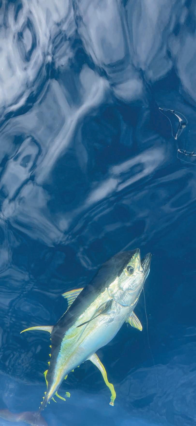 Michael let me know the last 15m was the final push of the fight,and he guided me through it as the tuna circled.“Pull up ...okay,let him turn ...pull his nose up.”Again and again and again. At last the leader was in,but when I look again it had been pulled out — over and over again.It was frustrating being so close to the end and yet so far.