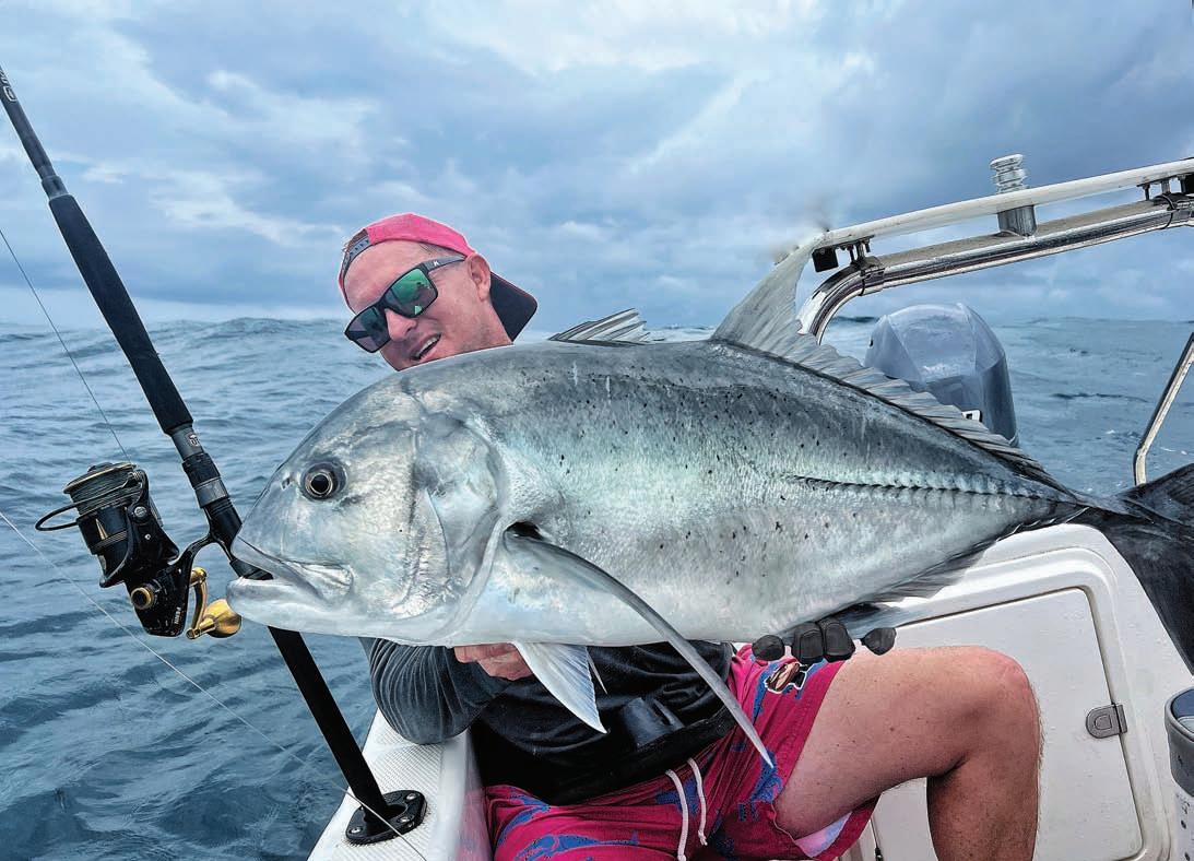 The great love of many anglers’lives — a giant kingfish aka giant trevally caught off Mozambique.Photo supplied by Mark de la Hey.See pg 35