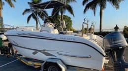 Yamaha F70hp, 4-stroke motor (20 hours). Bal. of warranty till 2024. T-Top. Hydraulic steering. Lowrance Hook 7 GPS/fishfinder & VHF radio. Live well (pump/plumbing). Deck wash, rod holders & bait boards. Full Cat-D safety. Front casting deck with removable cushions. Boat & motor covers. Roadworthy galv. breakneck trailer, rims & spare.