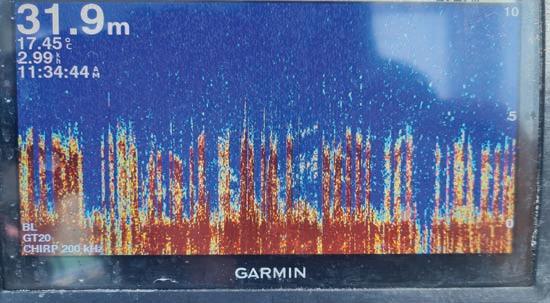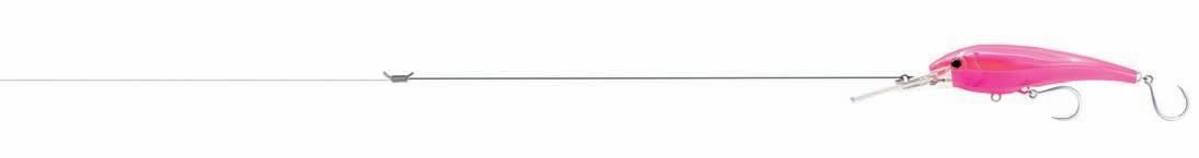 At 10.10am,the right long lure – a Pulsator Tube in blue,white,and purple – got a strike.