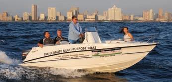 Erwin’s ambition to advance from bay fishing and fishing from the Durban beaches to his ultimate dream of owning and skippering his own offshore “ski-boat”was realised in 1962.He acquired a 17ft marine ply craft powered by two Johnson outboard motors — a 712hp and an old 30hp,both tiller arm configuration.He launched this boat from the beach off Durban Ski-Boat Club adjacent to Durban harbour’s North Pier.
