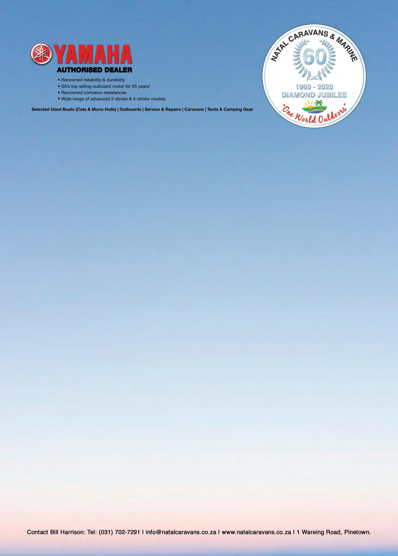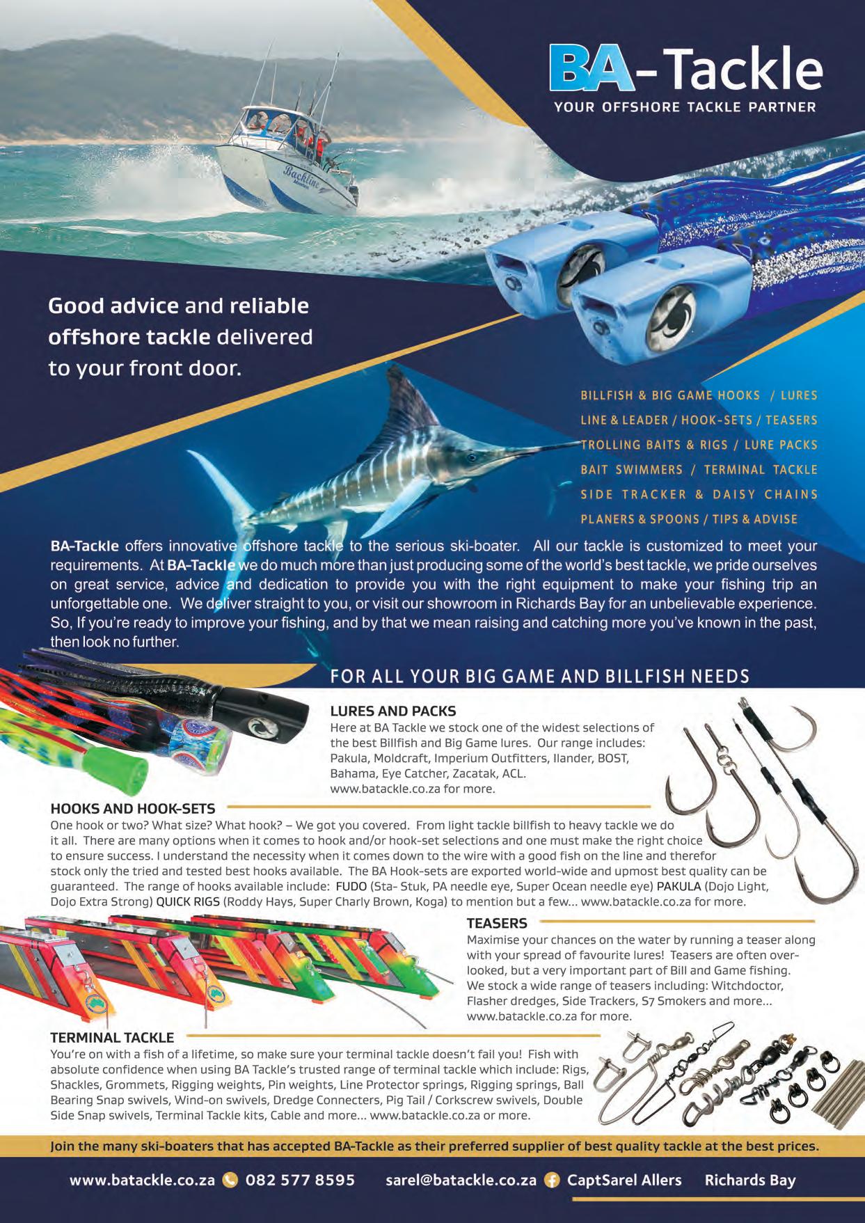 SKI-BOAT Magazine, ISSN 0258-7297, is published six times a year by Angler Publications & Promotions cc, Reg. No. CK 88/05863/23, and is distributed by On the Dot, as well as directly by the publishers to retail stores throughout South Africa.