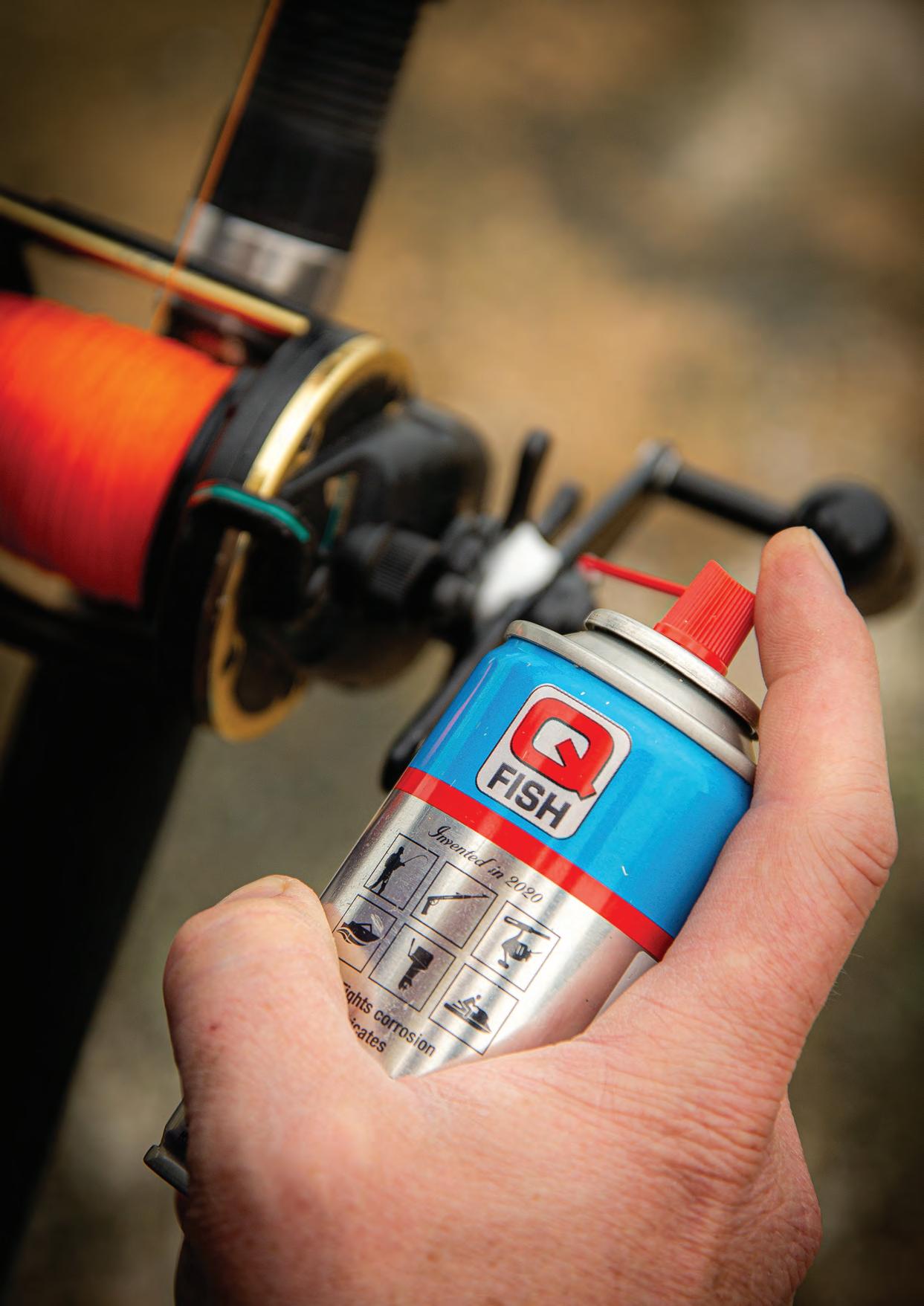 4) Finally,spray some Q-FISH on a rag and wipe down the reel’s entire housing for overall corrosion protection.