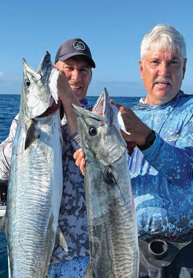 Yes,man,we have to do it again! We were almost over the reef and there it was – another strike.This time I fought the fish,and as it came closer to the boat we saw it was a ’cuda.Yikes! A few Rapala Lips began to show.On any other day it’s awesome to catch a ’cuda,but this time we had one thing on our minds:Catch snoek (AKA queen mackerel).