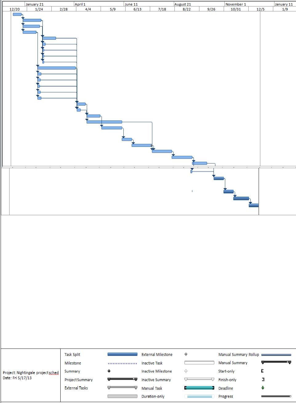 Schedule has been included to illustrate initial planning phase for Nightingale project. The project team will identify the critical path and network sensitivity to meet the project deadline date for the MedCON event.